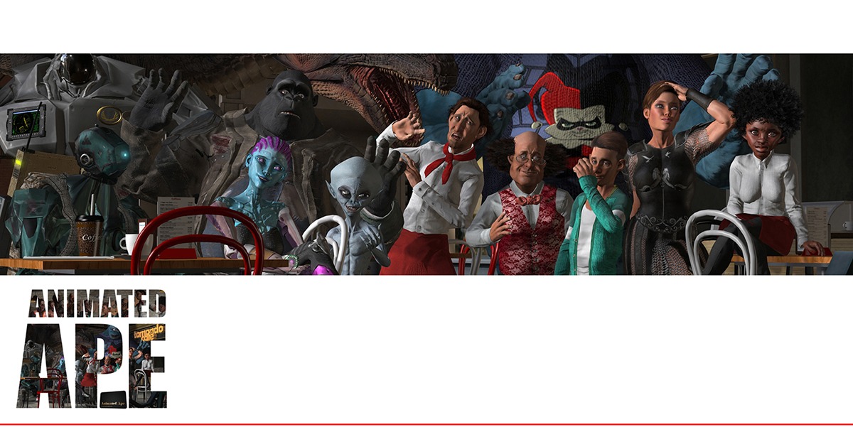 Animated Ape Productions Ltd has been set up to conceive, design, pitch & produce its own IP based around accessible, cost effective CGI animated cartoon content. We seek to bring our thoughts, our experience, our aesthetic in 2D comic-book imagery to that of the moving cartoon image and present our CGI material to corporate sector entities who might wish to option, co-produce, publish, transmit and/or stream this form of entertainment. Whether publishing our own 2D printed comics, such as with 'Dinotoons' or 'Damned Dirty Apes', or producing specific material for 2D online content, such as 'Drell's Marauders' for 'Aces Weekly', we have always sought to create and develop interesting and well designed characters that 'live' in terms of character, situation and genre. Animated Ape seeks to emulate our prior 2D creative output with our current 3D CGI output, our objective and goal being to convey the simple fun and entertainment of our comic book ethos via our own distinctive 'take' on CGI.